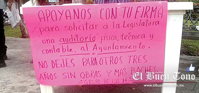 Con pancartas alusivas a la solicitud de auditoría a las dependencias municipales, pero también el repudio a la administración de Armel Cid de León, alcalde supuestamente con licencia,pero quien es evidente sigue dando ordenes muy desafortunadas por cierto! decenas de personas inconformes firmaron durante toda la mañana el documento contra el “golpeador”.