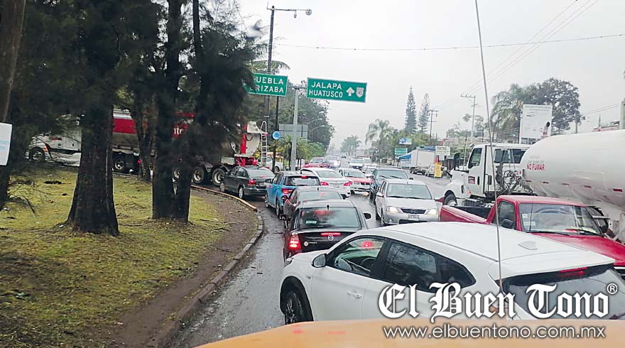Esta situación provocó un caos vehicular en la zona, ya que los conductores se vieron obligados a utilizar la autopista, donde también se registraba congestión debido a las reparaciones en el puente de Metlac.