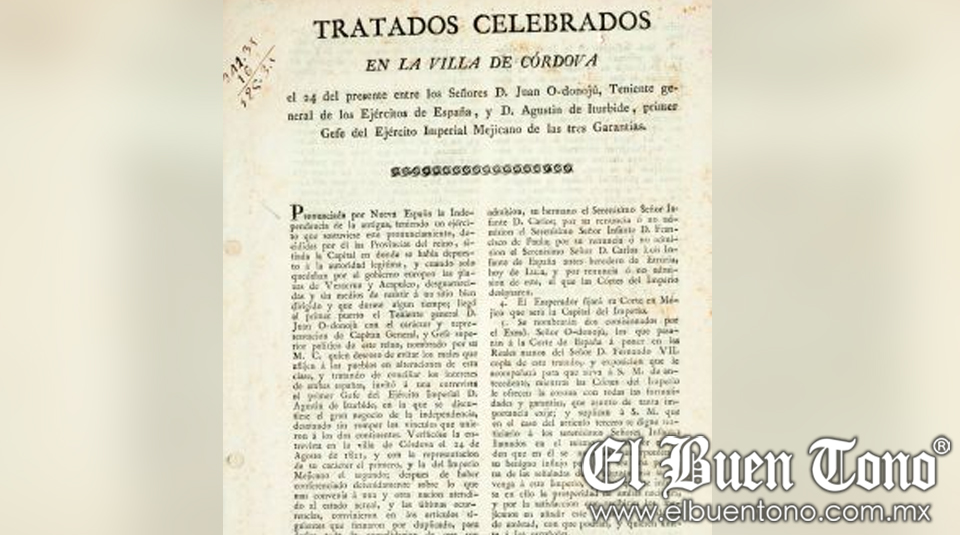 Los Tratados de Córdoba son los primeros manuscritos legales por los cuales se pronunció públicamente la independencia de México, constaban de 17 preceptos, los cuales fueron aprobados por de Agustín de Iturbide, y para México entró en vigor justo al día siguiente de su firma, el 25 de agosto.