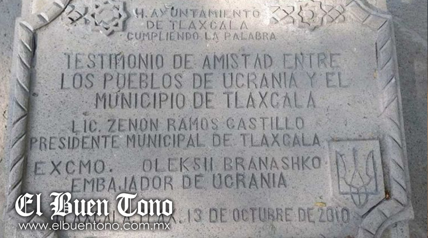 “Testimonio de amistad entre los pueblos de Ucrania y el municipio de Tlaxcala”, se lee en la piedra labrada, que hoy ha tomado importancia porque Ucrania fue invadida por órdenes del presidente ruso Vladimir Putin.