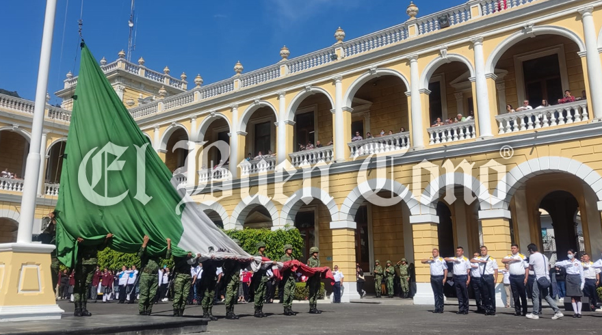 Previo a la incineración del labaro patrio se realizó el desfile de banderas históricas en la explanada del palacio municipal, así como la entonación del Himno Nacional Mexicano.