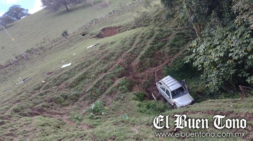 Coscomatepec.- Un accidente se registró la mañana del martes en el tramo de la carretera federal que conecta a Huatusco con Coscomatepec, donde un vehículo terminó en el fondo de una ladera.