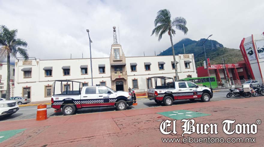 Río Blanco.- En medio de la crisis de seguridad que afecta al municipio y a sus residentes, las dos patrullas donadas por el Gobierno del Estado permanecen varadas frente al Palacio Municipal.