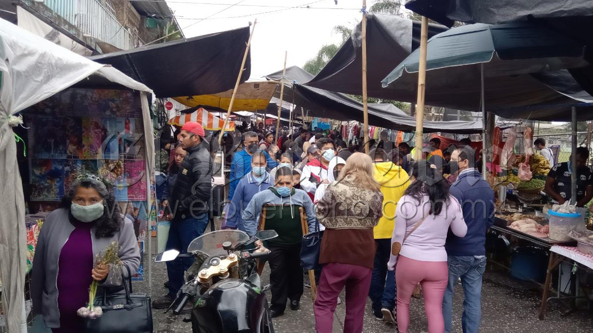 Córdoba.- Pese a las medidas sanitarias estipuladas por la Secretaría de Salud derivado de la semaforización epidemiológica, en sitios como el tianguis dominical de El pueblito, pueden verse aglomeraciones en los diversos locales de comida, ropa y artículos para el hogar.