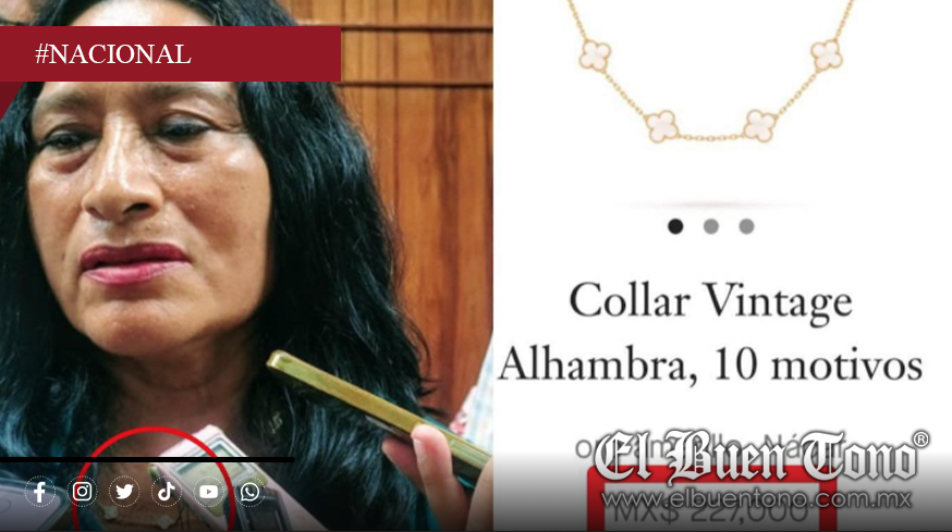 El accesorio, identificado como un modelo “Vintage Alhambra” de la marca francesa Van Cleef & Arpels, fue exhibido en redes sociales por el analista Jorge García Orozco, quien señaló su alto valor. La alcaldesa no negó el precio ni la autenticidad del collar, aunque insistió en que fue un obsequio.