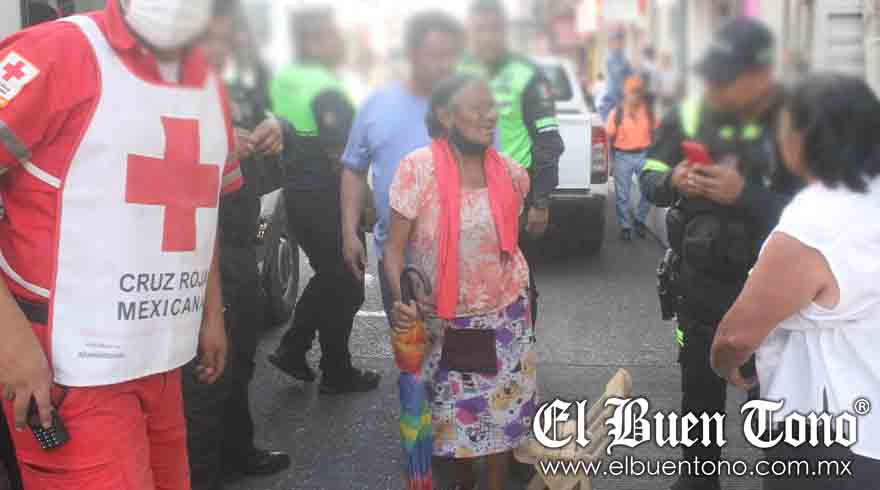 La señora, Senorina Cortés Gómez, vecina de la colonia Santa Cruz Buena Vista, fue atendida por paramédicos de la Cruz Roja y trasladada para su atención médica.