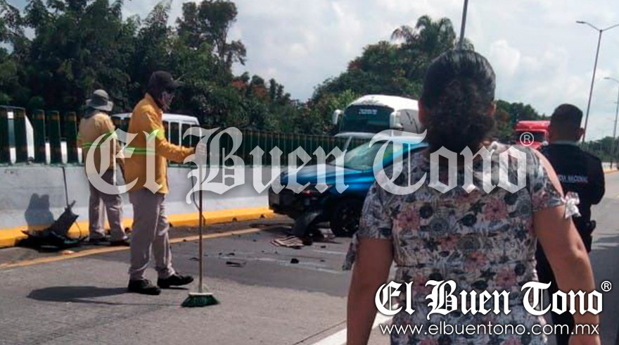 Fortín, Ver.- Un accidente vehicular registrado esta mañana de lunes a la altura de la excaseta de cobro, en la autopista Córdoba -Orizaba, dejó sólo daños materiales.
