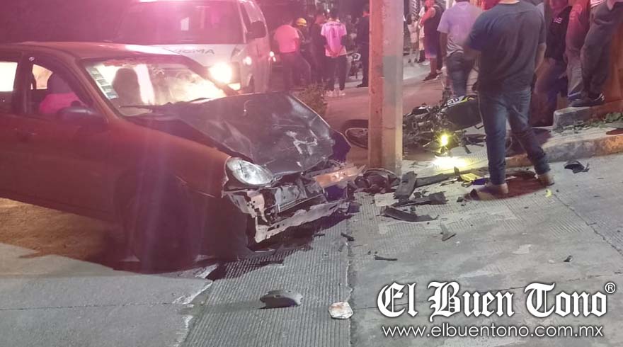 Coscomatepec, Ver.- Tres personas resultaron lesionadas durante un choque entre una motocicleta y un vehículo Chevrolet Chevy, registrado esta noche en el libramiento.