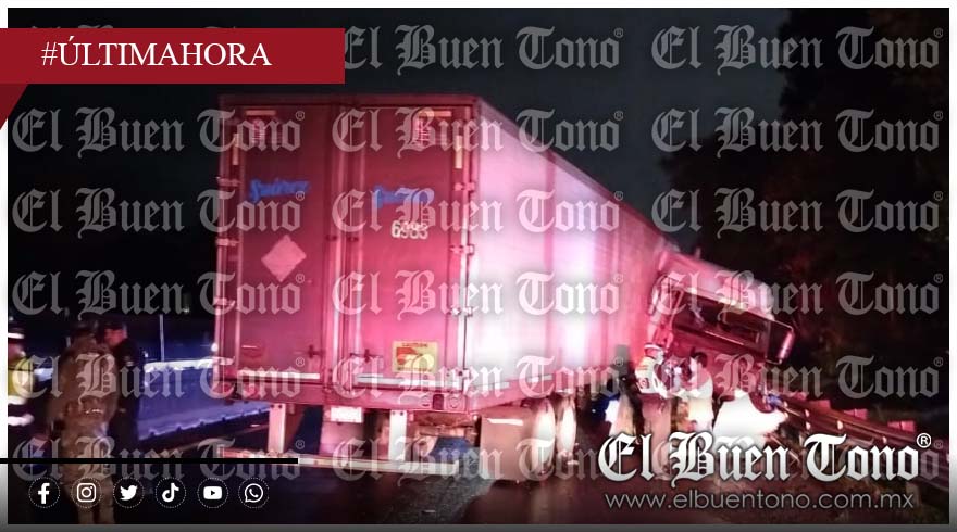De acuerdo con los primeros reportes, un tractocamión que remolcaba una caja seca térmica perdió el control por causas que hasta el momento no han sido determinadas, impactándose de manera violenta contra las barreras metálicas de contención. A consecuencia del choque, la unidad quedó severamente dañada y prácticamente descuadrada, obstruyendo por completo la vialidad.