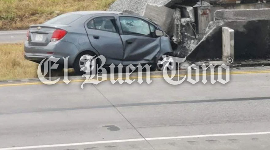 Cuitláhuac, Ver.- Un automóvil particular resultó seriamente dañado de su parte frontal, al chocar contra el muro de contención, la tarde de este jueves en la autopista Córdoba -Veracruz.