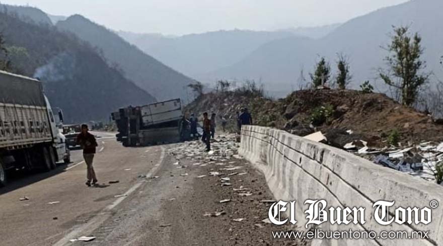 Un aparatoso accidente ocurrió en la autopista Puebla – Orizaba el miércoles 29 de mayo, cuando un tráiler se volcó en la zona de las Cumbres de Maltrata. La caja seca del camión cayó sobre un auto Nissan que pasaba en ese momento, aplastándolo casi en su totalidad.