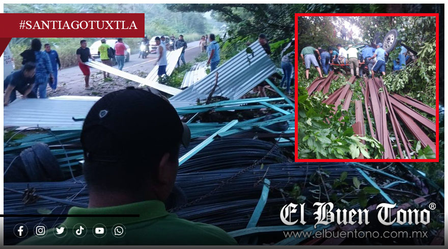 Santiago Tuxtla.- La mañana del lunes 1 de diciembre de 2025 se registró un accidente sobre la carretera federal 180, a la altura del poblado La Flor de Canela, perteneciente al municipio de Santiago Tuxtla, Veracruz. Según los primeros reportes, un vehículo que transportaba material de construcción -principalmente fierros- se salió de la vía y cayó a una barranca.
