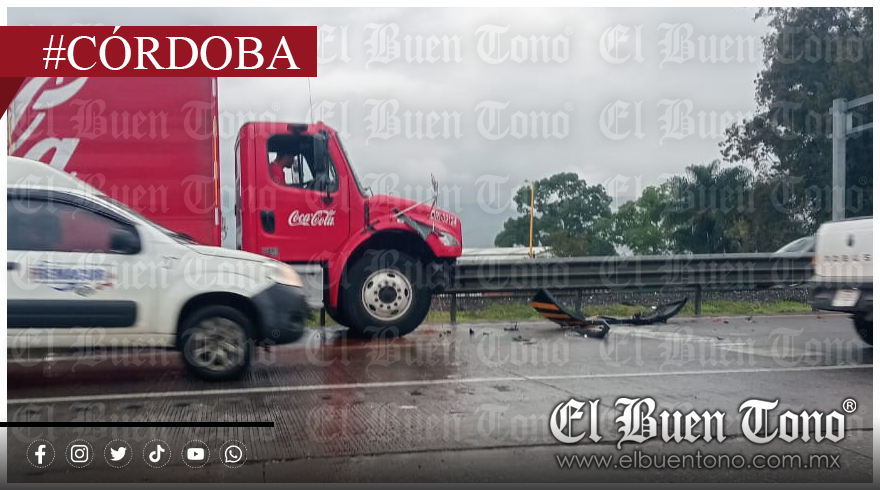 De la redacción El Buen Tono Córdoba.- Un camión de la empresa Coca Cola, chocó por alcance contra una camioneta, al circular sobre la autopista Córdoba -Orizaba, a la altura de La Quebradora. El accidente dejó una persona lesionada que fue atendida por paramédicos. La circulación sobre el carril de alta velocidad se encuentra obstruida, mientras esperan el arribo de los elementos de la Guardia Nacional de Carreteras.