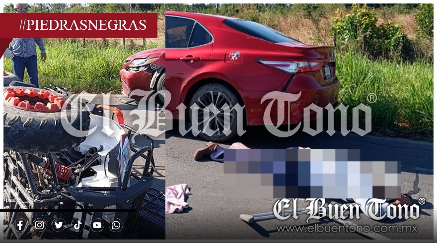 Piedras Negras, Ver. – Un accidente de tránsito entre un automóvil color rojo y una cuatrimoto se registró esta mañana del miércoles 24 de diciembre en la carretera Ricardo Fernández Villegas, a la altura de la Técnica 23, en Piedras Negras.