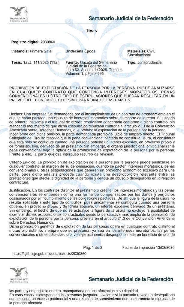El profesionista detalló que el criterio no cuestiona el derecho de reclamar rentas o daños, sino los casos en los que la cuantificación rebasa parámetros razonables. “Si se fija el pago por ocupación de un terreno en una cifra que incluso supera el valor comercial del propio inmueble, y no existen avalúos ni peritajes sólidos que lo respalden, se corre el riesgo de imponer una carga desmedida”, sostuvo.