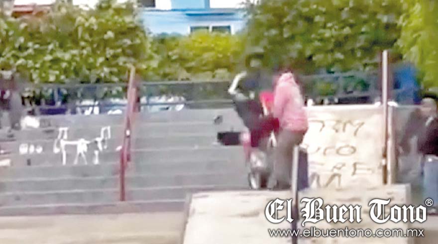 Los hechos se registraron alrededor de las 10:30 horas, cuando un grupo de jóvenes que practicaban acrobacias en patinetas invitó a un motociclista a subir las escaleras para realizar una maniobra. Sin embargo, al descender, el motociclista no pudo evitar impactar a un espectador que se encontraba cerca del área de patinetas. Como consecuencia, ambos cayeron al suelo y sufrieron múltiples contusiones.