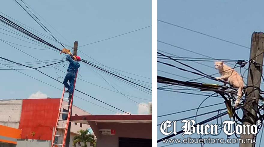 Córdoba.- En una muestra de empatía y solidaridad, un trabajador de una empresa de telecomunicaciones rescató a un gatito que se encontraba atrapado en lo alto de un poste, en la colonia Antorchista de Córdoba.