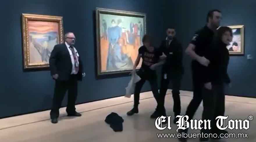 Una pareja de activistas por el medio ambiente han intentado pegarse sin éxito al marco de la icónica pintura de ‘El Grito’, de Edvard Munch, en el Museo Nacional de Oslo (Noruega). Los guardias de seguridad del museo han reducido a las dos activistas y a una tercera que estaba grabando el acto.
