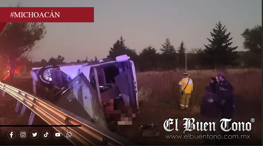 México.- Un trágico accidente en la carretera federal Pátzcuaro–Morelia dejó como saldo siete personas sin vida y 26 más lesionadas, luego de que un autobús de turismo volcara la mañana de este sábado a la altura del kilómetro 24, en la zona de Tiripetío, perteneciente a Morelia.