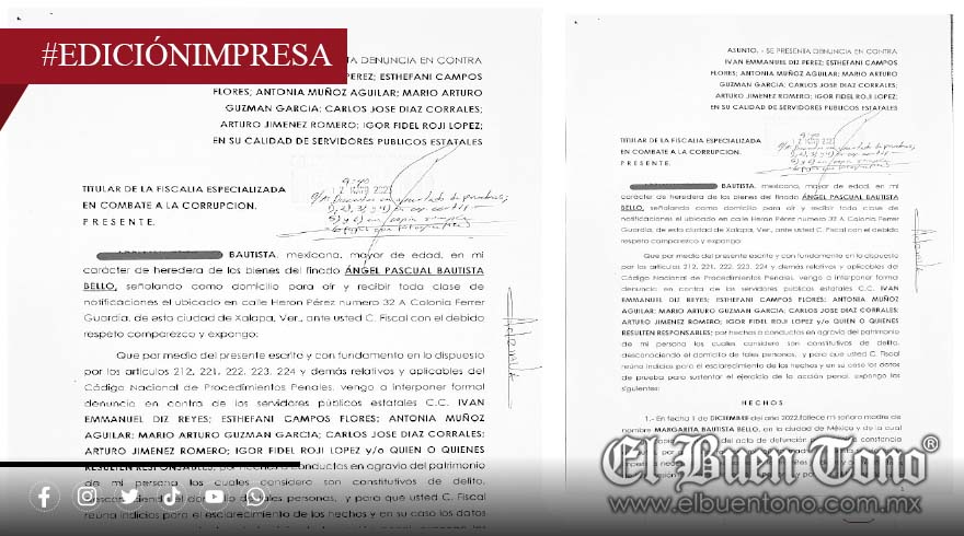 La querella fue presentada por una ciudadana, heredera legítima de una propiedad ubicada en Poniente 24 sin número de la colonia Santa María Tlachichilco, quien aseguró que el inmueble fue tomado de forma ilegal tras el fallecimiento de su madre, Margarita Bautista Bello, el 1 de diciembre de 2022.