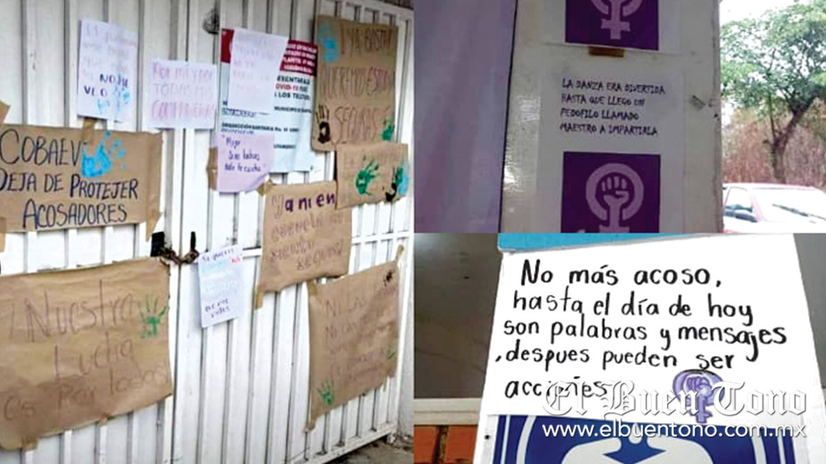 Por otra parte la mañana de ayer alumnas del plantel Cobaev 07, colocaron cartulinas en donde señalan que el profesor de danza, solicitó “trabajos especiales” a una alumna, por lo que se sienten inseguras de seguir recibiendo clases de este sujeto.