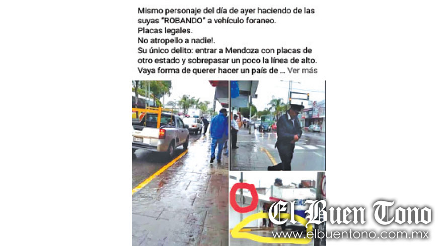 “Y así continúa la situación en Ciudad Mendoza. Paran a placas foráneas cuando los vehículos de Tránsito no las portan. Ni verificación y no duden que hasta ni licencia traen”, es uno de los mensajes que circula en diferentes páginas de Ciudad Mendoza.