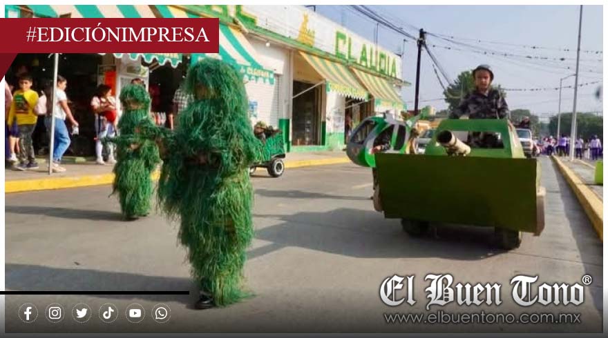 Los estudiantes, ataviados con vestimenta que emulaba al ejército, así como con trajes típicos de la época, mostraron trabajos manuales y representaciones alusivas a la Revolución Mexicana, pues construyeron un carro tanque, lo que inyectó de vitalidad y un ambiente festivo a la cabecera municipal en un evento que sirvió como preámbulo a la conmemoración oficial.