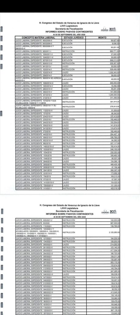 Mientras el último informe oficial de Pasivos Contingentes de septiembre detallaba los montos económicos en riesgo, una revisión de la carga de trabajo en la Coordinación Jurídica revela una crisis de eficiencia: más de dos centenares de juicios en materia laboral, civil y administrativa permanecen estancados en diversas fases procesales, sin sentencia firme ni acuerdo conciliatorio.