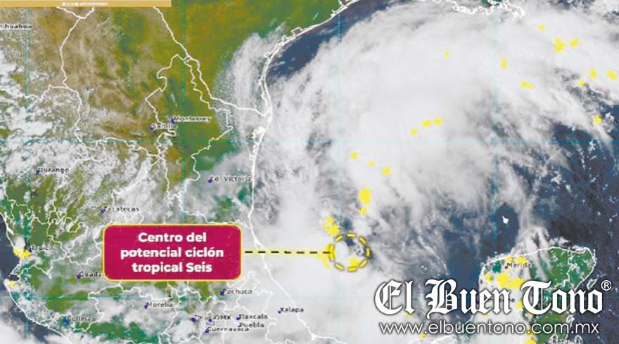Región.- La formación del potencial ciclón tropical Seis sobre el Golfo de México y su interacción con el frente No. 1 y la onda tropical No. 21, ocasionará lluvias extraordinarias (superiores a 250 mm) en Veracruz, alertó el Servicio Meteorológico Nacional.