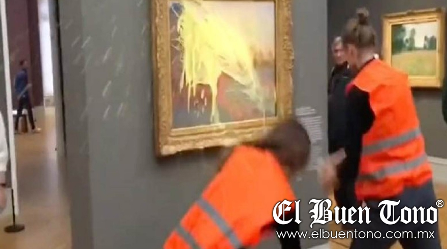 Alemania.- Otro cuadro más resultó dañado en medio de una protesta de activistas, en esta ocasión, le tocó a uno de Monet.