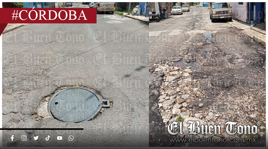Córdoba, Ver.- Debido al hundimiento de un registro y la cantidad de baches, vecinos de la Colonia Carriles viven con creciente inquietud ante la inminente formación de un socavón en la calle 12, entre las avenidas 44 y 46.