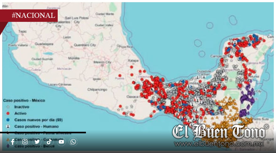 De acuerdo con su informe de Avance número 8, entre el 21 de noviembre de 2024 y el 13 de septiembre de 2025 se han confirmado 6 mil 703 casos distribuidos en ocho estados, siendo la semana número 34 del año la más crítica con 400 casos registrados.