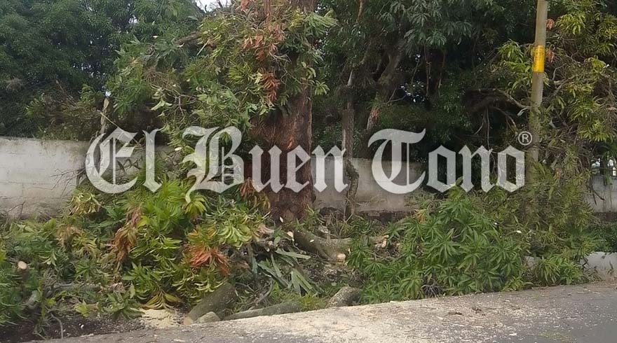 Amatlán. – Vecinos de la comunidad Potrero Nuevo denunciaron que, por órdenes del alcalde morenista Luis Arturo Figueroa Vargas, se mandó a derribar un árbol de mango de varios años, solo para construir una banqueta.
