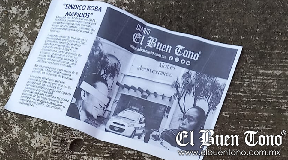 Coetzala.- El diario EL BUEN TONO se deslinda de los panfletos que se presume está tirando el presidente municipal Alejandro García Hernández, en los cuales acusa a la Síndica de robar maridos.