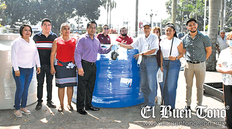 Fortín.- El alcalde, Gerardo Rosales Victoria, y el cuerpo edilicio entregaron 31 tanques de almacenamiento para agua y cinco cisternas a través del subsidio de transformación de viviendas fortinenses y que benefician a familias del municipio.