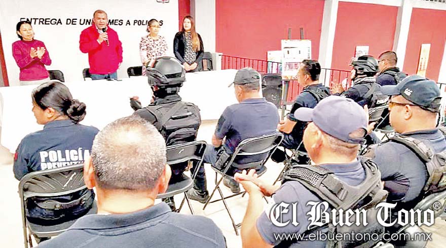 Yanga.- La mañana de ayer, en el palacio municipal, se llevó a cabo la entrega oficial de uniformes para los elementos de Seguridad Pública Municipal; evento que presidió el alcalde Fernando Nicolás Gordillo Torres.