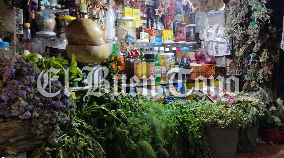 Son más de 300 diferentes hierbas las que ofrece en su puesto, y un sinnúmero de amuletos y preparados.
