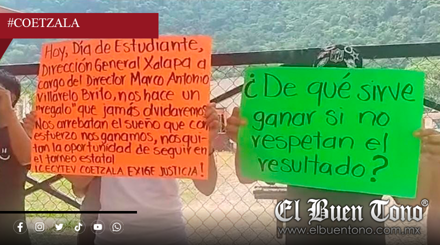 Coetzala, Ver.— Estudiantes del CecyTEV 31 se manifestaron afuera de su plantel para exigir a la Dirección General del subsistema educativo que respete su pase a la etapa final del Encuentro Regional Deportivo 2025, luego de haber ganado el primer lugar en fútbol varonil el pasado 10 de abril. Acusan que, pese a haber sido notificados como campeones, recientemente les informaron que su equipo no aparece registrado oficialmente para la siguiente fase.