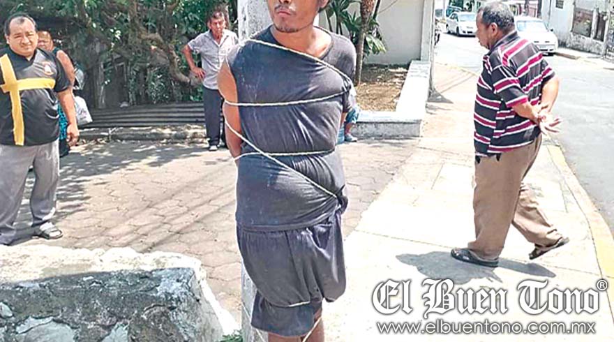 José Carlos “N”,  de unos 30 años de edad, fue sometido, amarrado a un poste y a punto de ser linchado, pero fue entregado a las autoridades policiacas ya que presuntamente padece de sus facultades mentales.