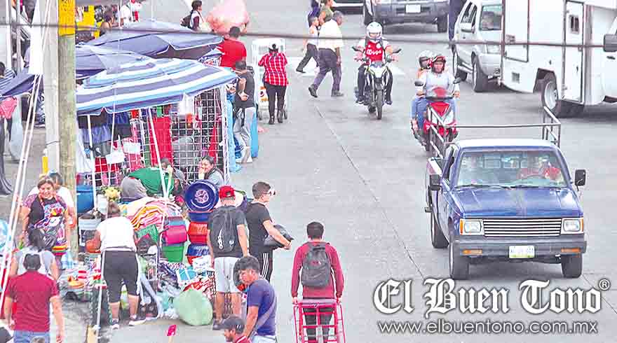 Fortín.- Un desorden existe en la zona del tianguis, pues comerciantes ambulantes que son protegidos por el coordinador de Comercio, Ernesto Arteaga Quevedo, vienen ocupando parte de la calle y las banquetas para colocar estantes y ofrecer diversos productos.