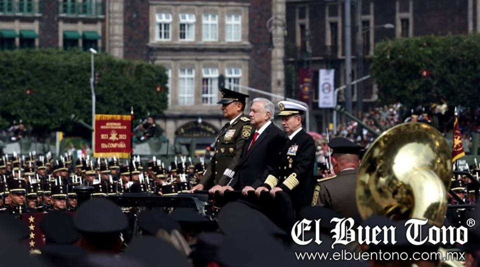 Mientras un grupo de aviones de la Fuerza Aérea Mexicana “vistió” el cielo con humo tricolor; acto seguido, AMLO y su comitiva abordaron el vehículo presidencial militar con el objeto de pasar revista a las agrupamientos castrenses, navales y de la Fuerza Aérea que participan en el Desfile.