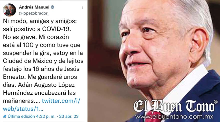 Al mediodía el presidente López Obrador, informó por medio de su cuenta de Twitter que por tercera vez dio positivo al Covid-19.