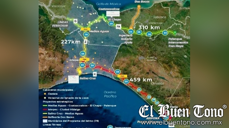 El Corredor Interoceánico está planteado para tener tres tramos entre los territorios de Veracruz, Oaxaca y Chiapas: