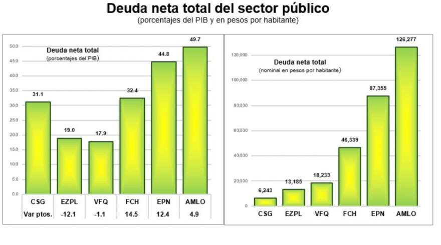 Si bien este aumento coloca en un nivel récord el apalancamiento del gobierno de AMLO, se destaca que los mayores incrementos históricos se registraron durante el mandato de Felipe Calderón, con un aumento de 14.5 puntos del PIB respecto a la administración anterior. Le siguió Enrique Peña Nieto con un aumento de 12.4 puntos del PIB, consolidando una tendencia preocupante en cuanto al endeudamiento público en México.