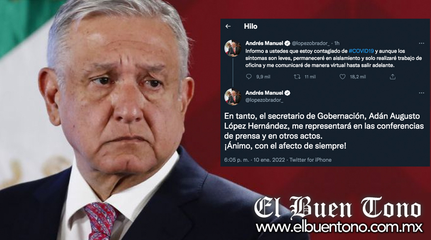 El Presidente de la República, Andrés Manuel López Obrador dio a conocer mediante su cuenta de twitter que nuevamente se ha contagiado de covid-19, por lo cual permanecerá en aislamiento y realizara su trabajo de manera virtual.