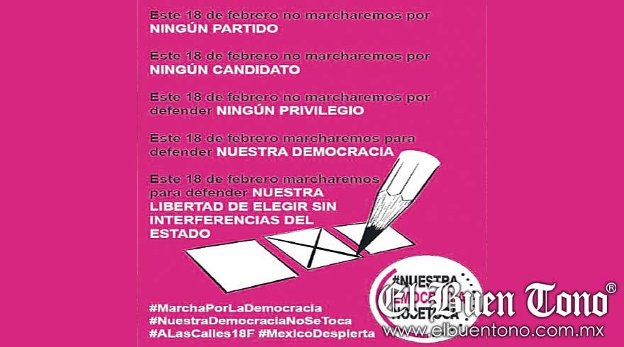 La convocatoria es para el próximo domingo 18 de febrero a las 11 de la mañana, donde el objetivo es protestar contra algunas iniciativas anunciadas por el presidente de la República, Andrés Manuel López Obrador.