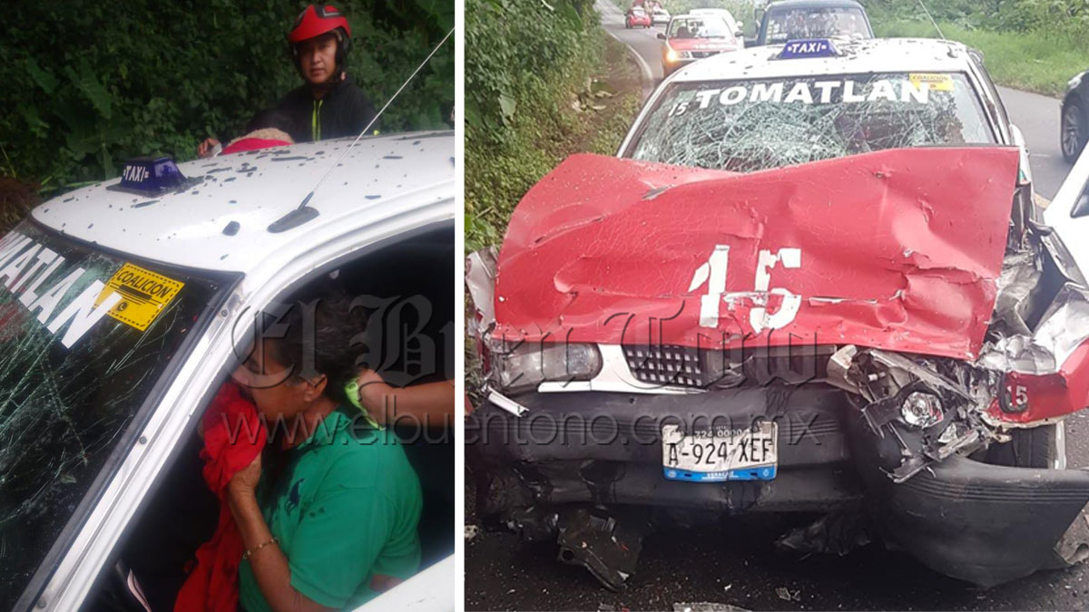 Coscomatepec, Ver.- Un aparatoso accidente dejó dos personas lesionadas de gravedad así como la movilización de los grupos de auxilio y elementos de la Policía Municipal, luego de impactarse de frente el taxi marcado con el número 15 de Tomatlán y una camioneta la cual era conducida por una persona en aparente estado de ebriedad, sobre la carretera federal Fortín- Huatusco.
