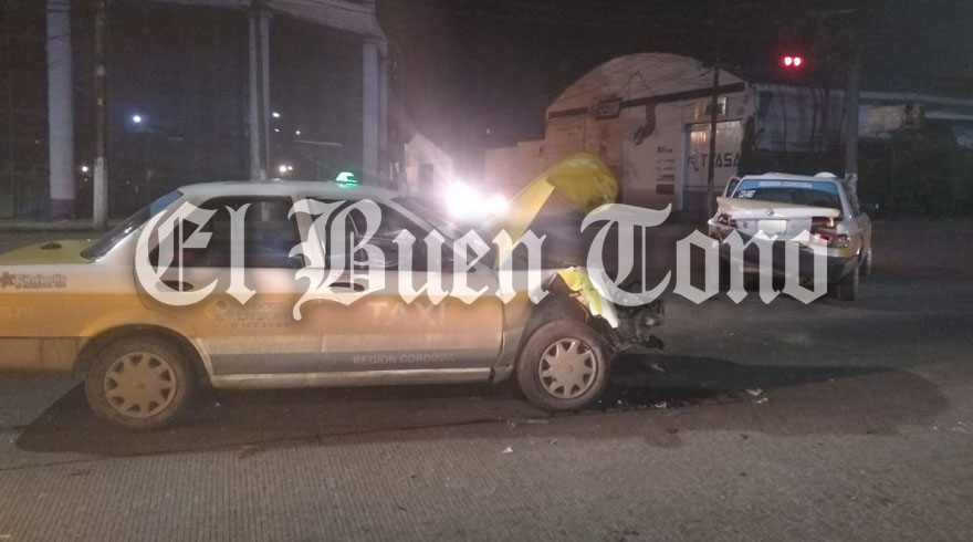 Córdoba.- El choque entre dos taxis ocurrido durante la madrugada de este domingo, dejó únicamente daños materiales, así como la movilización de las autoridades de Tránsito Municipal, justo en la entrada a la unidad habitacional Árboledas.