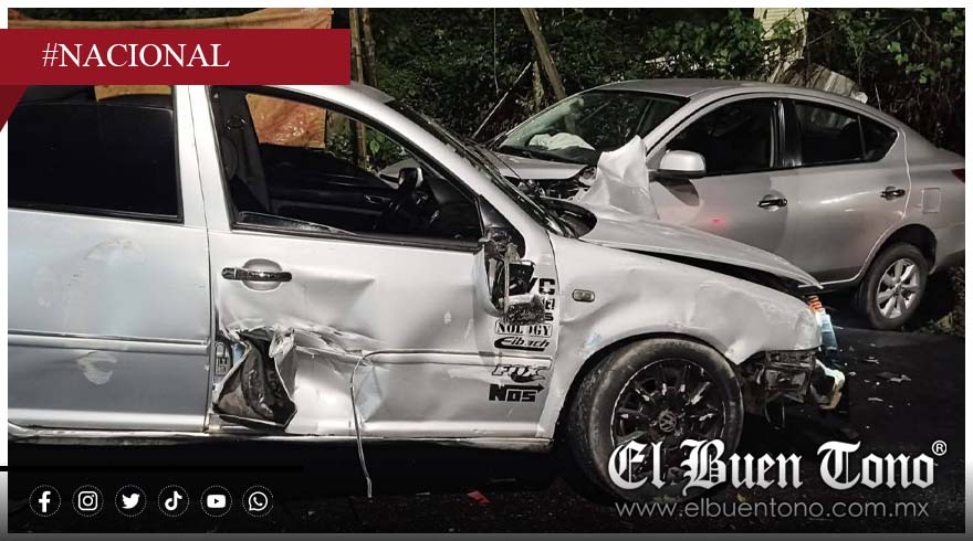 El accidente ocurrió antes del ascenso conocido como “El Piojo”, un tramo carretero identificado como punto de riesgo debido a sus curvas pronunciadas y visibilidad reducida. En el percance se vieron involucrados un Nissan Versa y un Volkswagen Jetta, ambos con daños materiales considerables tras el fuerte impacto frontal.