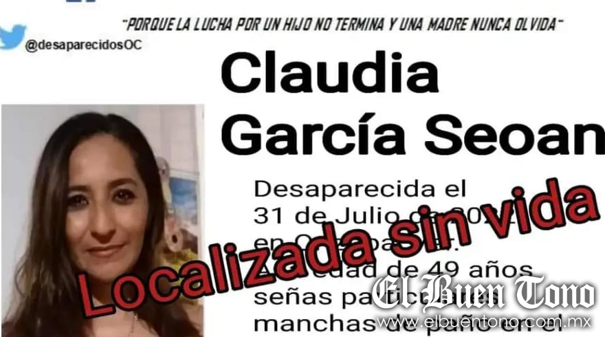 Orizaba.- El Colectivo Familias de Desaparecidos Orizaba-Córdoba, dio a conocer este día que fue localizada sin vida, la comerciante orizabeña Claudia García Seone, quien desapareció el pasado 31 de julio del presente año.